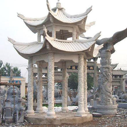 石雕石亭就是由石頭建造的小亭,在我國古亭中也是較為常見的一種。相較于木亭,石亭的壽命更長一些,目前中國現存最早期的一些亭子都是石建亭。早期的石亭多是模仿木結構的造法,以石料雕琢成相應的木構架建成。直到石結構逐漸成熟后,石材料的特征才得以發揮。明,清時,石材的特征漸為突出,構造方法上相對簡化,出檐較短,形成質樸,淳厚,粗曠的風格。